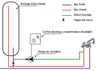 La circulation de l’eau chaude dans la boucle se fait à l’aide d’un circulateur d’eau chaude sanitaire.
