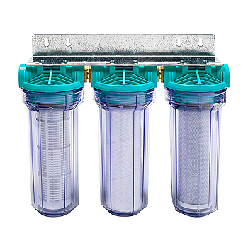 - D’un porte filtre en plastique ou acier qui se fixe près de l’arrivée d’eau. Ce porte filtre peut être simple, double, triple ou davantage selon le nombre de cartouches filtrantes dont vous aurez besoin pour traiter l’eau de votre maison.