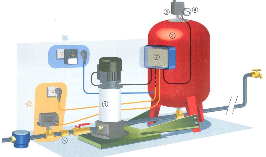 Le groupe de surpression domestique : C’est un ensemble pompe de surface, réservoir à vessie, contacteur manométrique  montés en usine sur une platine pour aspiration en charge sur le réseau d’eau de ville ou bâche de reprise (possible sur puits à moins de 7 m). Les groupes de surpression domestiques auto-amorçant avec pompe centrifuge horizontale ou verticale multicellulaire sont particulièrement adaptés pour la surpression domestique (appartements, villas, chalets, fermes, etc.), à partir d’un puits, d’une bâche de reprise ou du réseau d’eau de ville si celui-ci a une pression insuffisante.