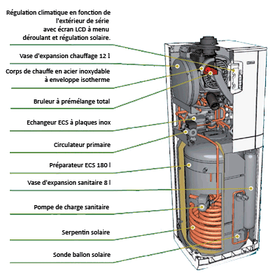 Chaudière au sol avec ballon solaire intégré
